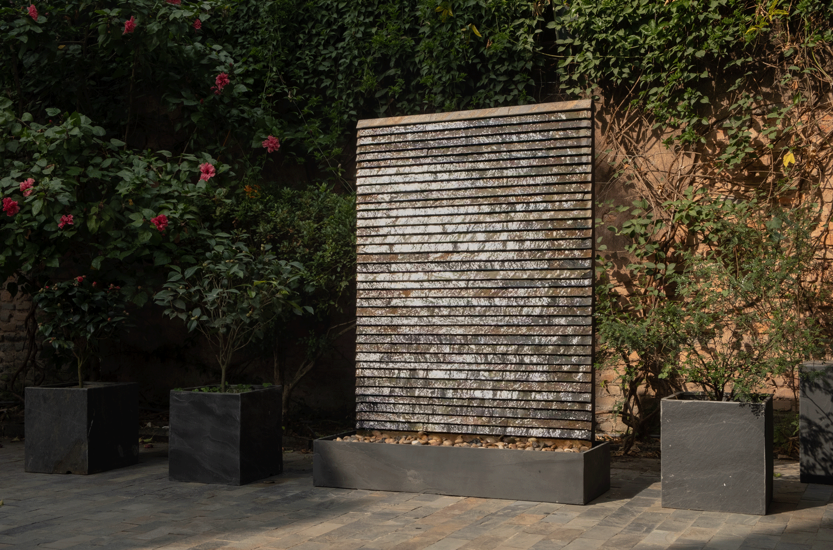 KUBO entdeckenDer Spektakuläre Stufenbrunnen KUBO aus Naturschiefer mit stufenweiser Beleuchtung ist ein echter Hingucker. Auch akkustisch gibt er einiges her, so übertönt er beispielsweise störende Umgebungsgeräusche wie Strassenlärm.