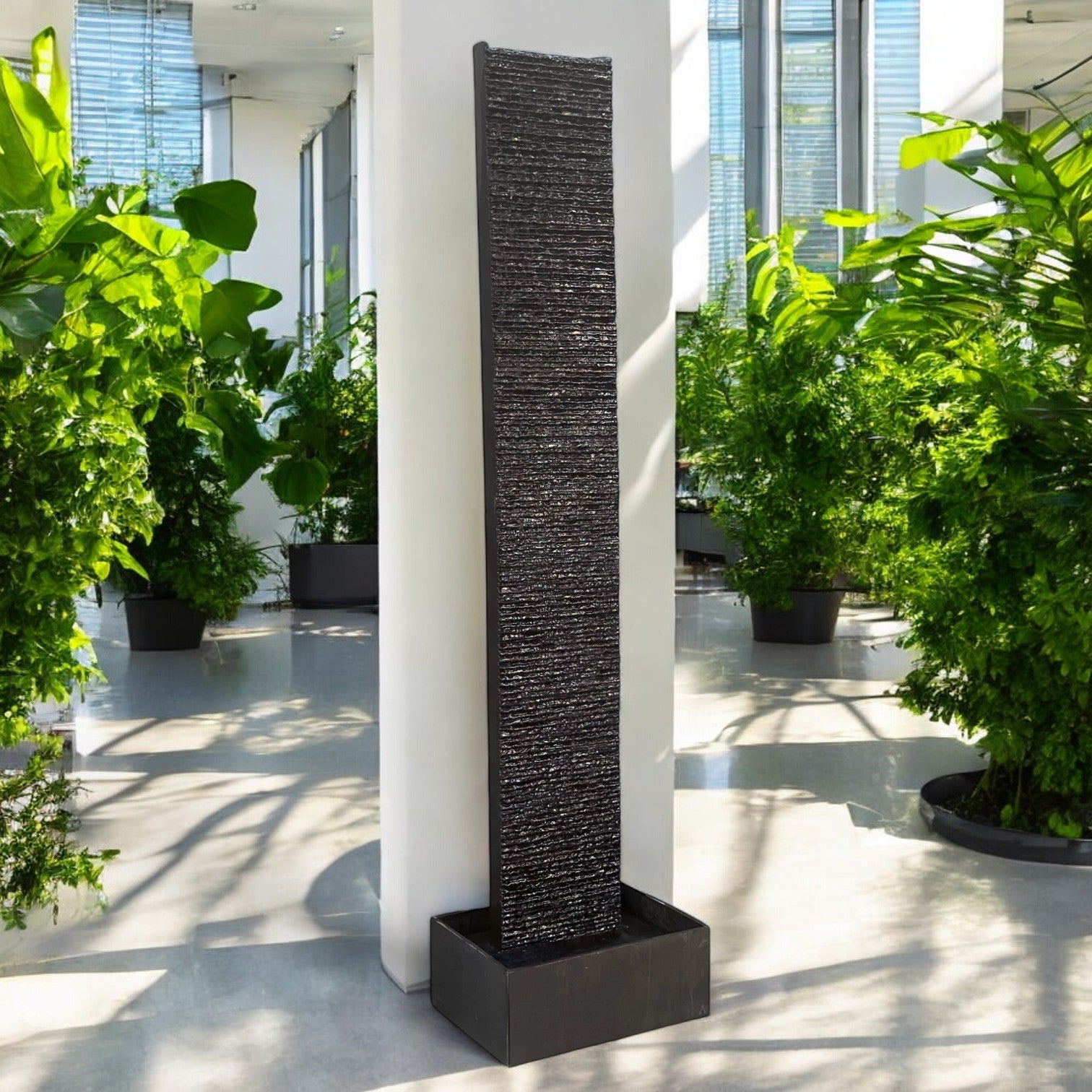Polyvalente, cette fontaine peut être installée dans un salon, un bureau ou un jardin. Une pompe puissante est incluse pour assurer un débit d'eau constant.